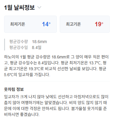 하노이 1월 날씨 정보