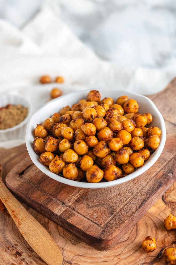 - 병아리콩에 소금, 올리브 오일을 뿌려 오븐에 구워 바삭한 스낵으로 섭취합니다.